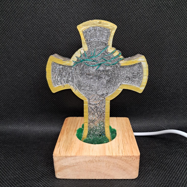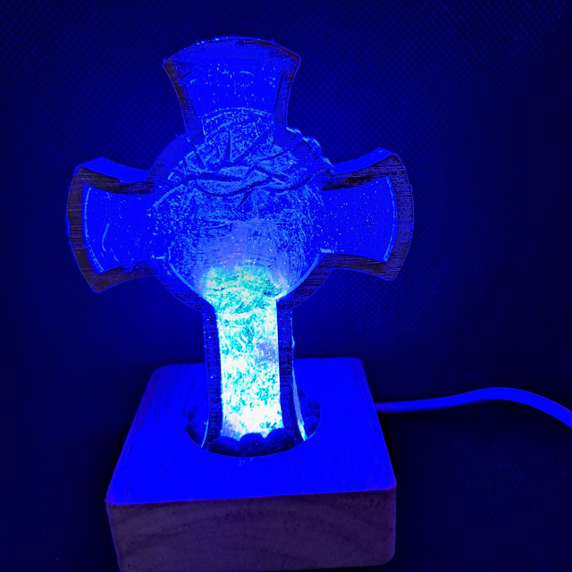 The Gold cross of faith, LED light powered by USB, ideal little side light or to add ambience to any area. 1Meter wire with on/off switch. Total Height 11cm
