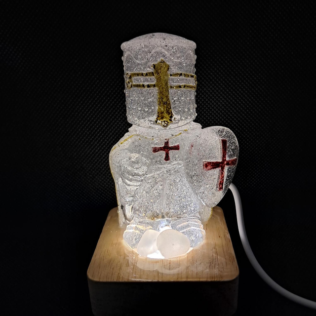 Brave Sir sheild the Knight, LED light powered by USB, ideal little side light or to add ambience to any area. 1Meter wire with on/off switch. Total Height 11cm